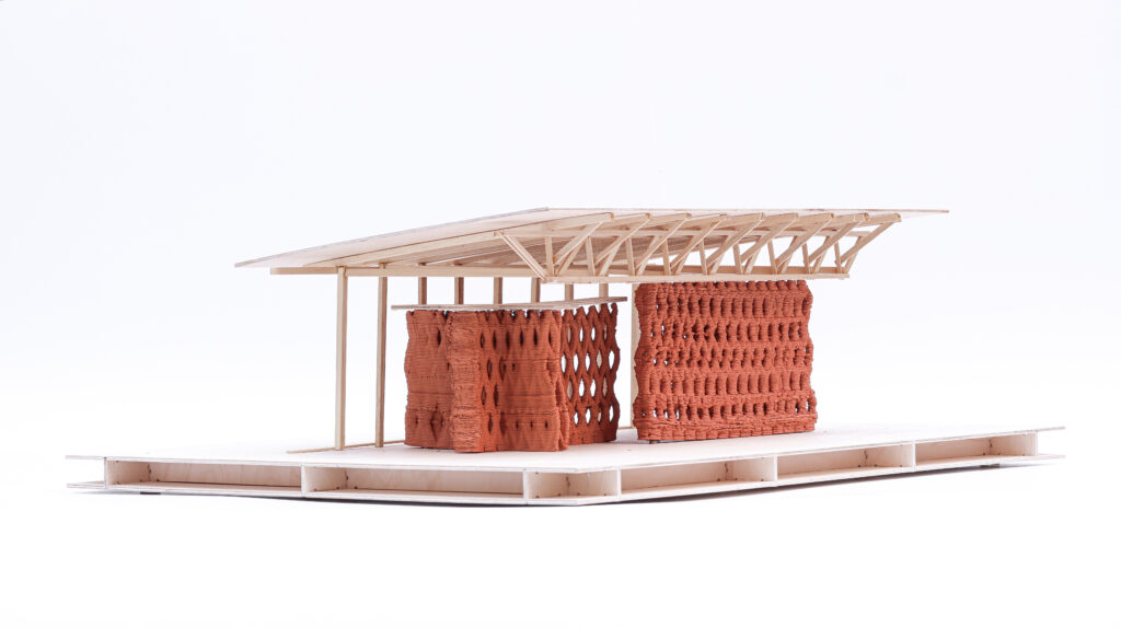Utilizing ICON’s printing bed to define the urban plan, the units are printed with deliberate shifts, strategically breaking the continuity of the buildings. This design choice creates dynamic circulation pathways, ingeniously integrated through the printer rails. These pathways guide inhabitants to shared courtyards ,serving as climatic mediators, as well as to indoor shared spaces like community kitchens, gyms, and laundromats, fostering a sense of communal living.